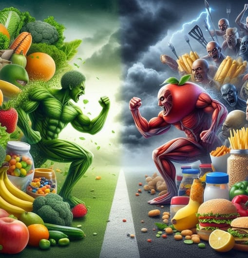"🌱 When Organic Power Triumphs Over Processed Food Killer! 🌱 Every bite of natural, nutrient-rich goodness brings us one step closer to health, vitality, and a future free from the hidden dangers of processed foods. Embrace organic, empower your body, and let nature fuel your journey to wellness! 💪🍃